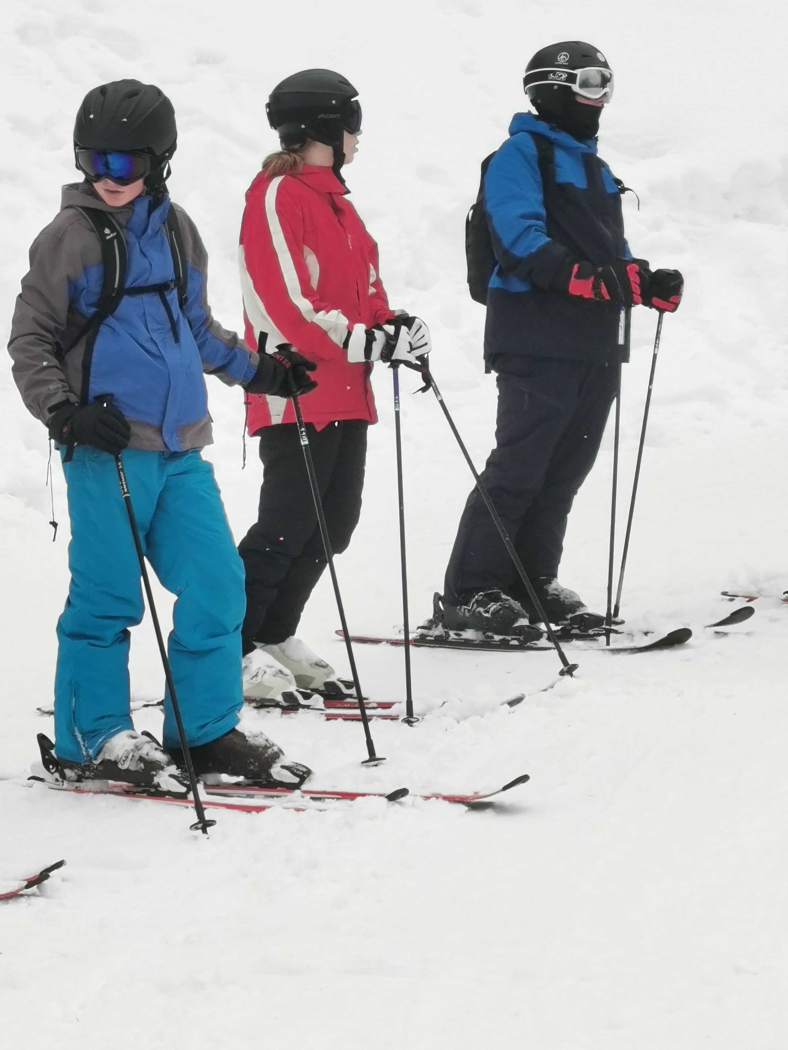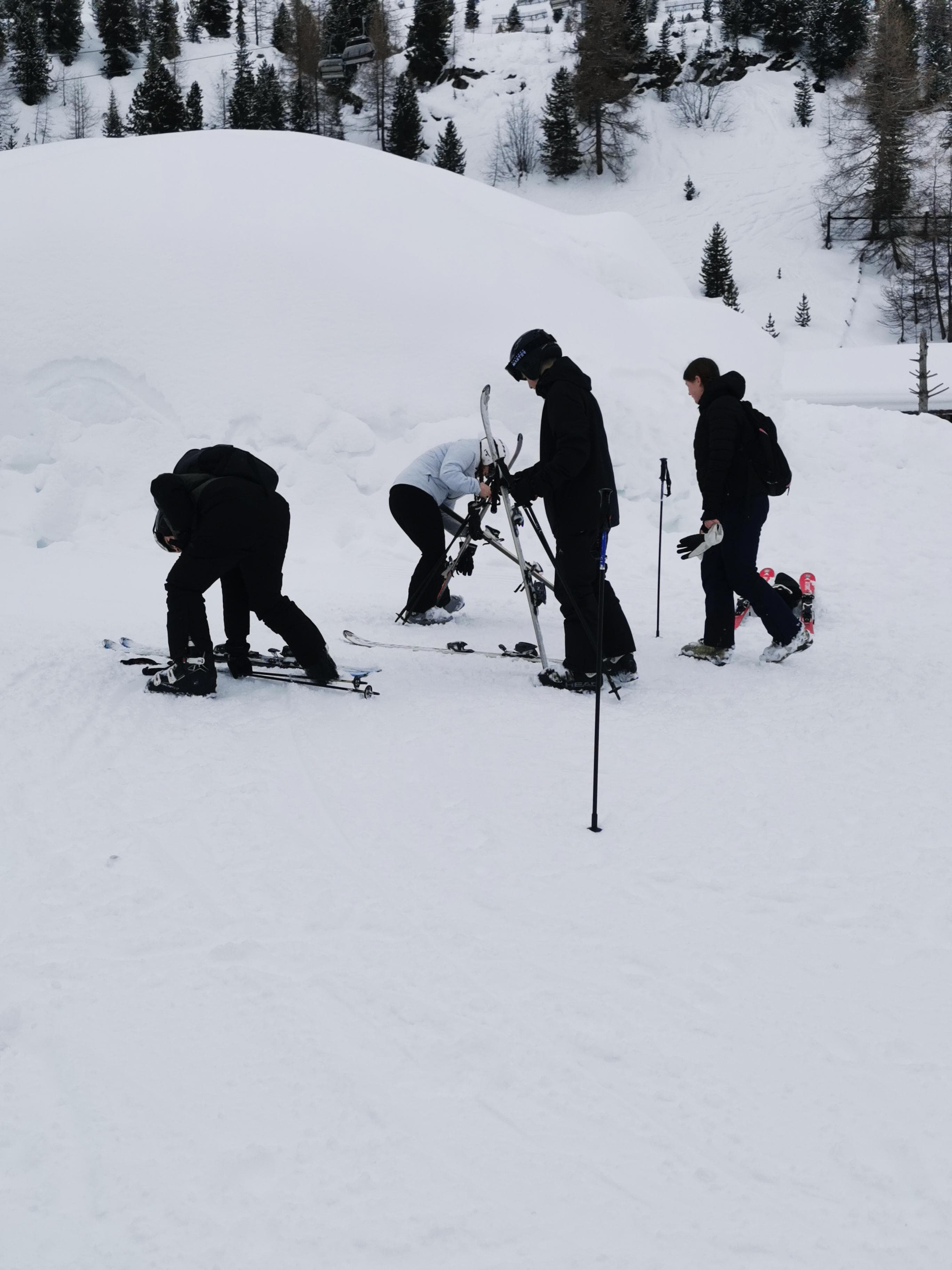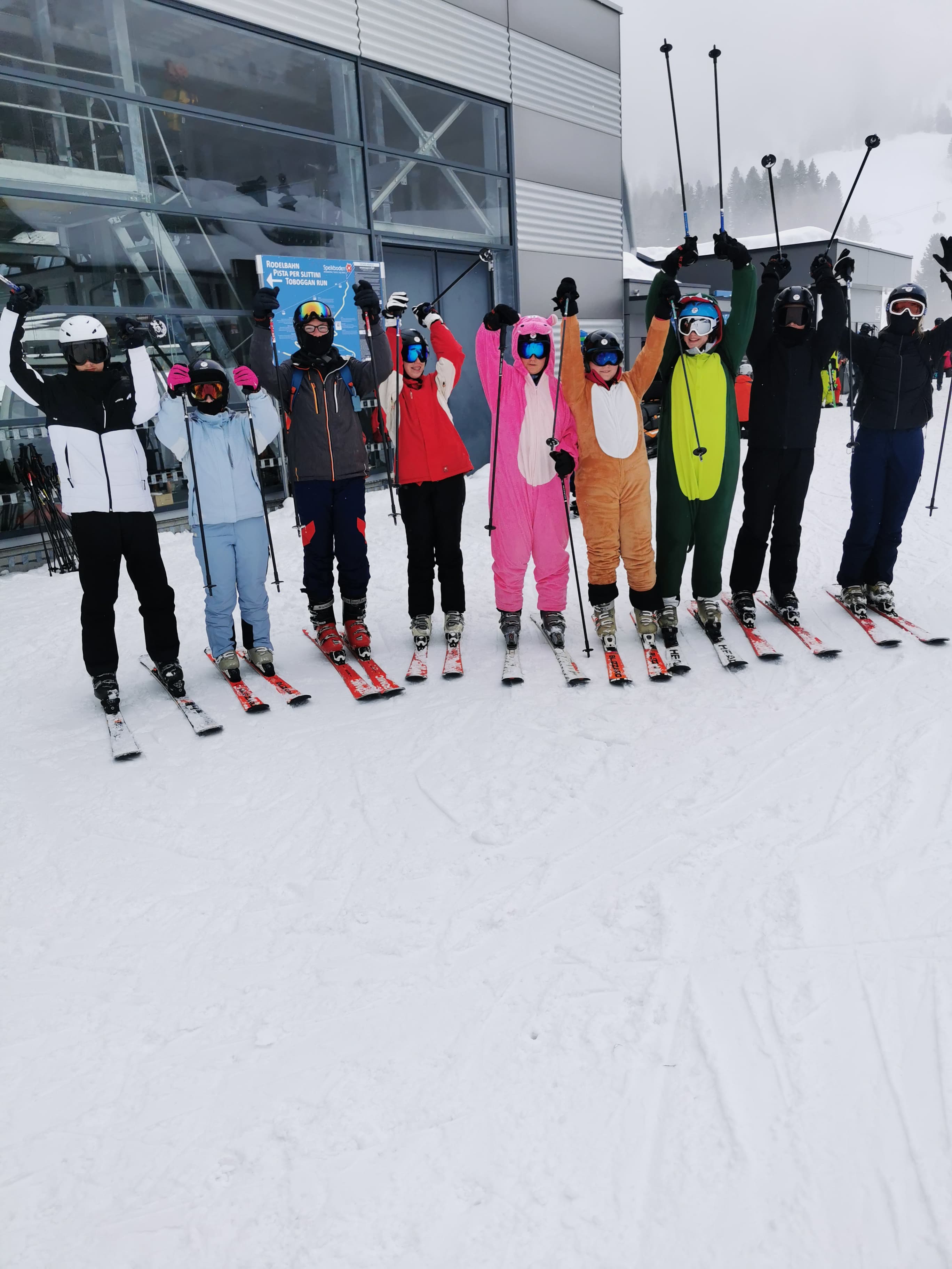 Inzwischen sind die täglichen Abläufe schon zur Routine geworden. Alle kennen sich im Ort und im Skigebiet aus, wissen woran sie morgens denken müssen und zu welchen Zeiten wir uns treffen. Es ist nicht selbstverständlich, dass nahezu alle weiterhin mit Ehrgeiz bei der Sache sind und unbedingt ihr eigenes Können verbessern wollen. Eine der beiden Anfängergruppen hat längst das Förderband verlassen und bewältigt die ersten roten Pisten. Am Nachmittag geht es deutlich weiter hoch mit dem Sessellift. Die andere Anfängergruppe trainiert weiter an den blauen Pisten. Die beiden Gruppen mit Fortgeschrittenen unterscheiden sich durch ihr unterschiedlich hohes Tempo, bewältigen aber alle Pisten des Skigebiets.
