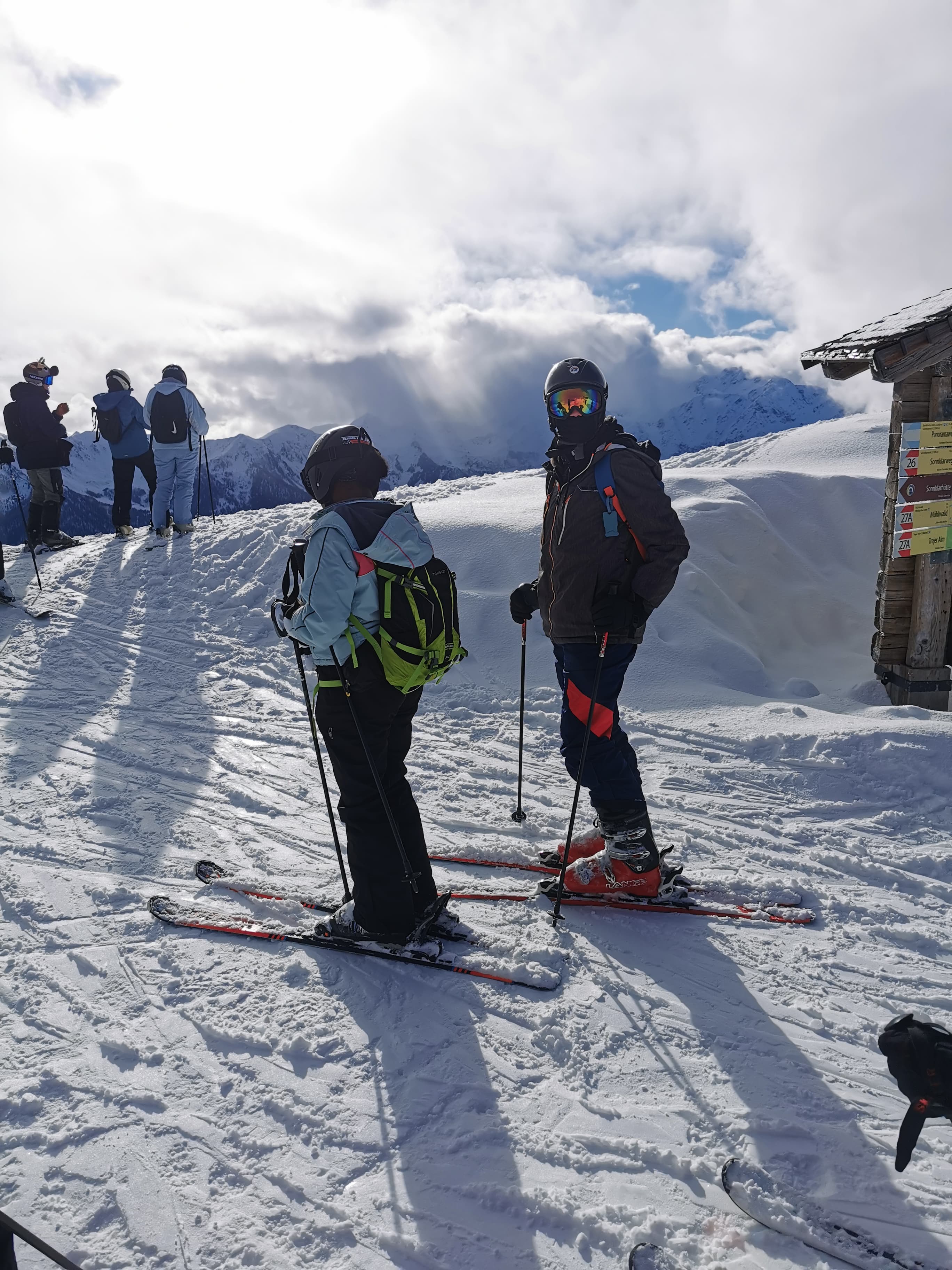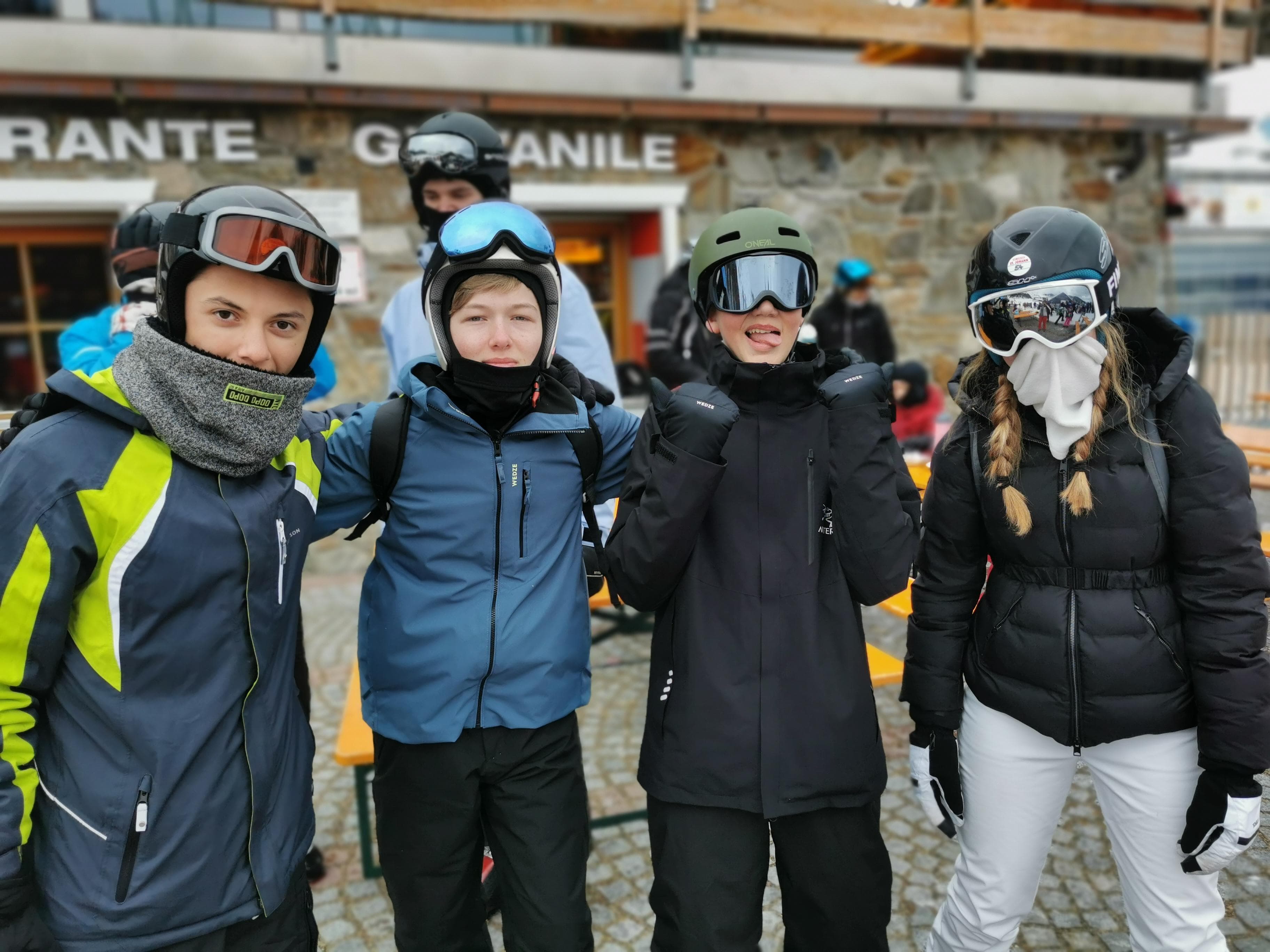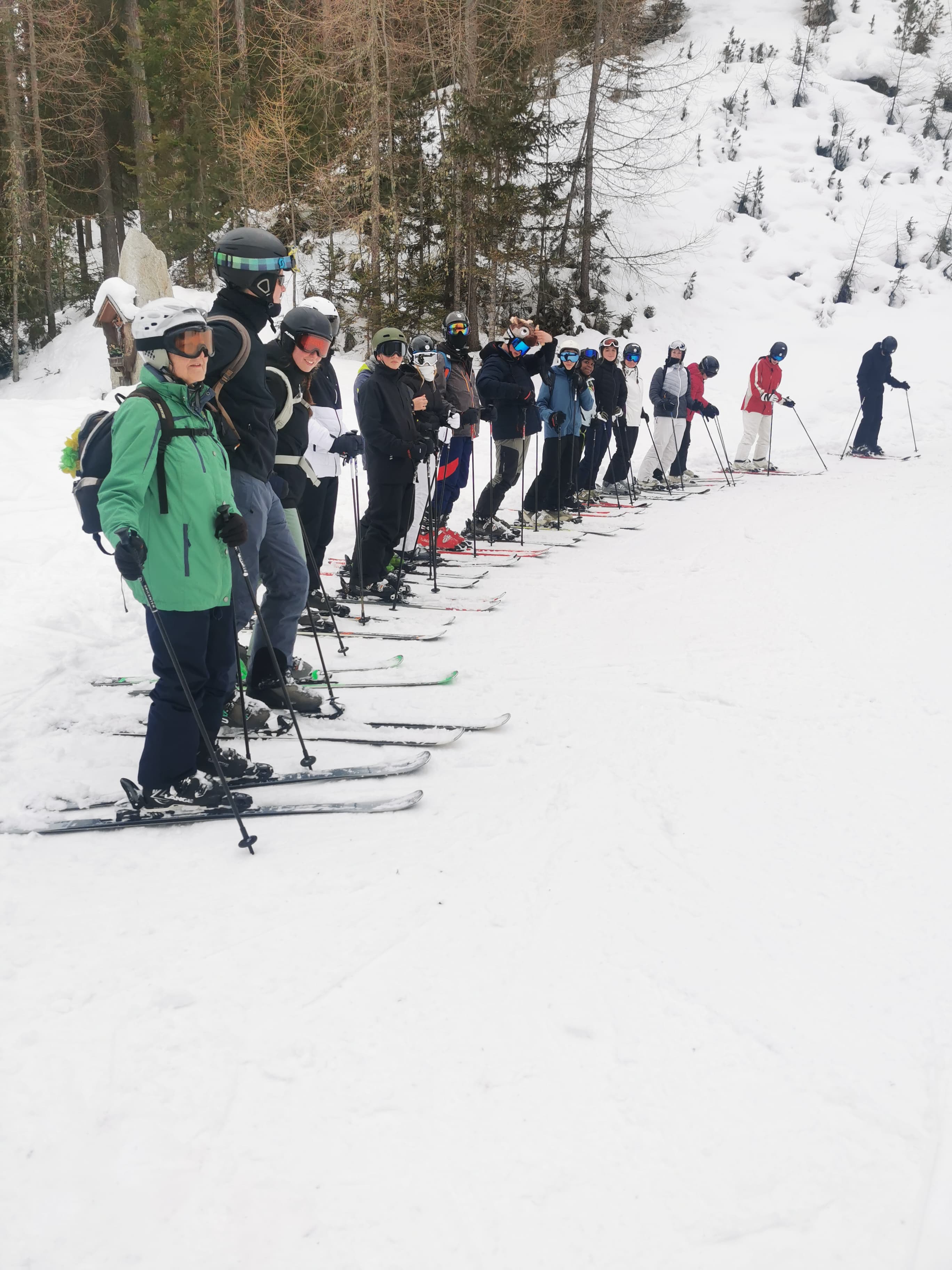 Inzwischen sind die täglichen Abläufe schon zur Routine geworden. Alle kennen sich im Ort und im Skigebiet aus, wissen woran sie morgens denken müssen und zu welchen Zeiten wir uns treffen. Es ist nicht selbstverständlich, dass nahezu alle weiterhin mit Ehrgeiz bei der Sache sind und unbedingt ihr eigenes Können verbessern wollen. Eine der beiden Anfängergruppen hat längst das Förderband verlassen und bewältigt die ersten roten Pisten. Am Nachmittag geht es deutlich weiter hoch mit dem Sessellift. Die andere Anfängergruppe trainiert weiter an den blauen Pisten. Die beiden Gruppen mit Fortgeschrittenen unterscheiden sich durch ihr unterschiedlich hohes Tempo, bewältigen aber alle Pisten des Skigebiets.
